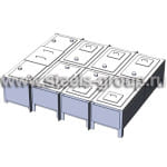 Данная накопительная тара – конструкция из листовой стали. Она состоит из нескольких секций, где приемный отсек отделен сороудерживающей решеткой. Приемная емкость снабжена крышкой для осмотра и очистки. В комплектацию входят патрубки соединительные.